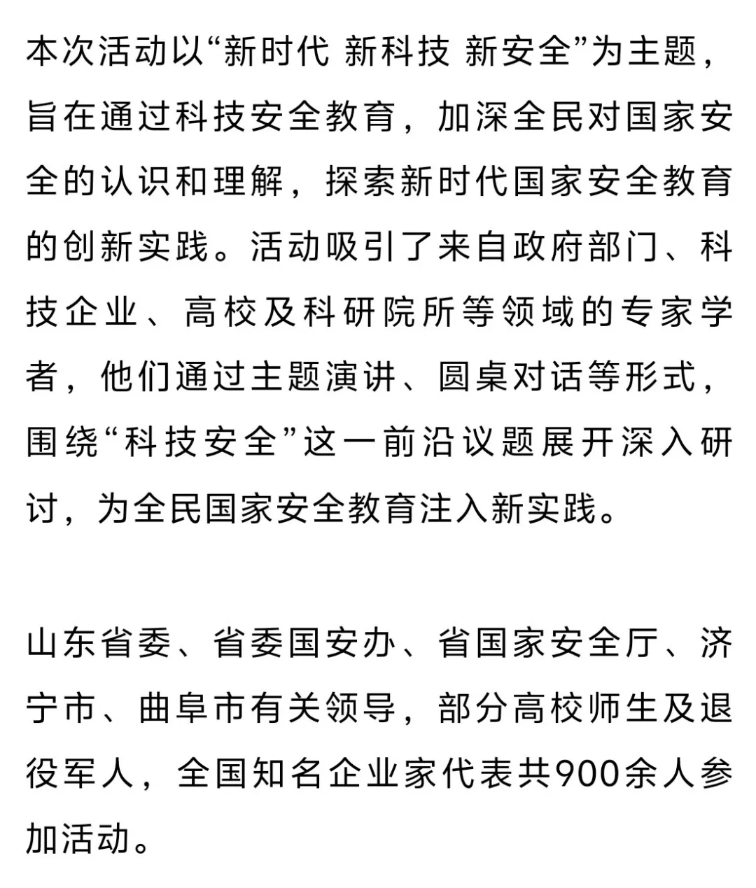 国家安全刻心间,科技安全启新篇——“新时代 新科技 新安全”五盾讲堂在曲阜举行